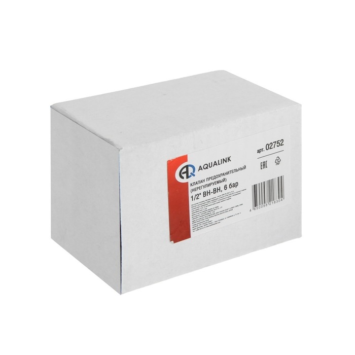 Клапан предохранительный AQUALINK, 1/2", внутренняя/внутренняя резьба, нерегулируемый, 6 бар