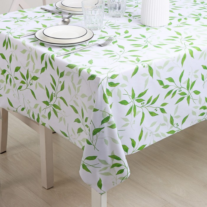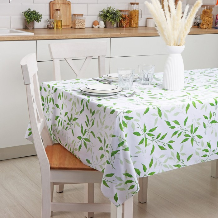 Клеёнка на тканевой основе «Листья» в 3–4 раза прочнее обычных аналогов. Такой материал не мнётся и не деформируется. ПВХ-основа делает клеёнку максимально простой в уходе. Любая грязь устраняется быстро: с помощью простой влажной тряпочки вы без особых усилий приведёте стол в порядок.