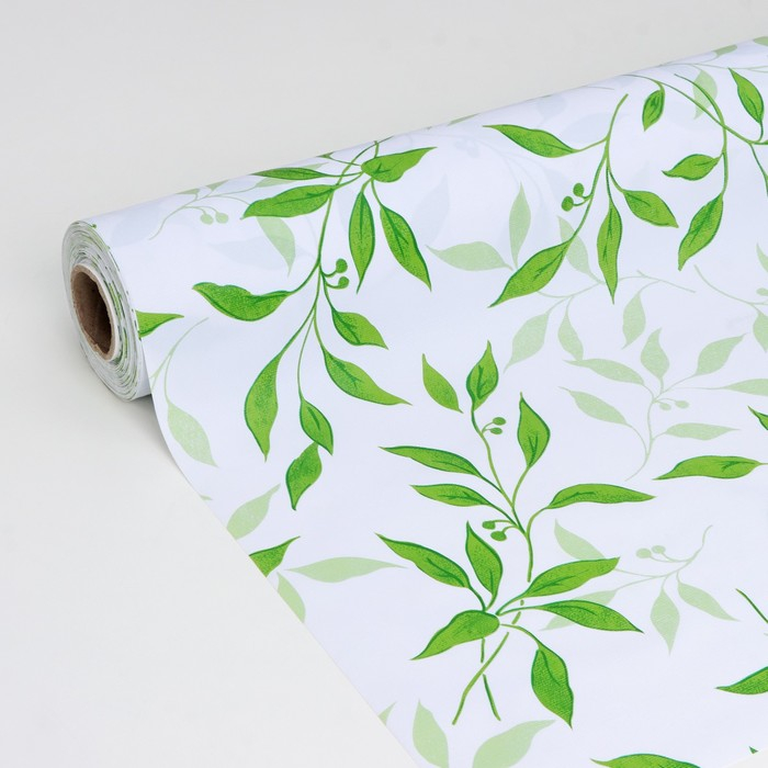 Клеёнка на стол Доляна «Листья», на тканевой основе, ширина 137 см, рулон 20 м, толщина 0,22 мм, цвет белый