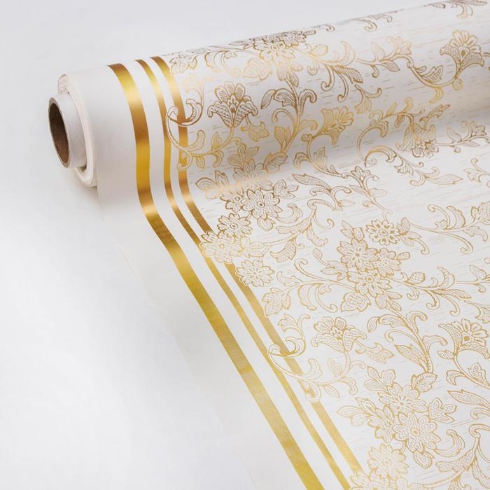 Клеёнка на стол Доляна «Тропики», на тканевой основе, рулон 20 метров, ширина 137 см, общая толщина 0,22 мм, цвет белый