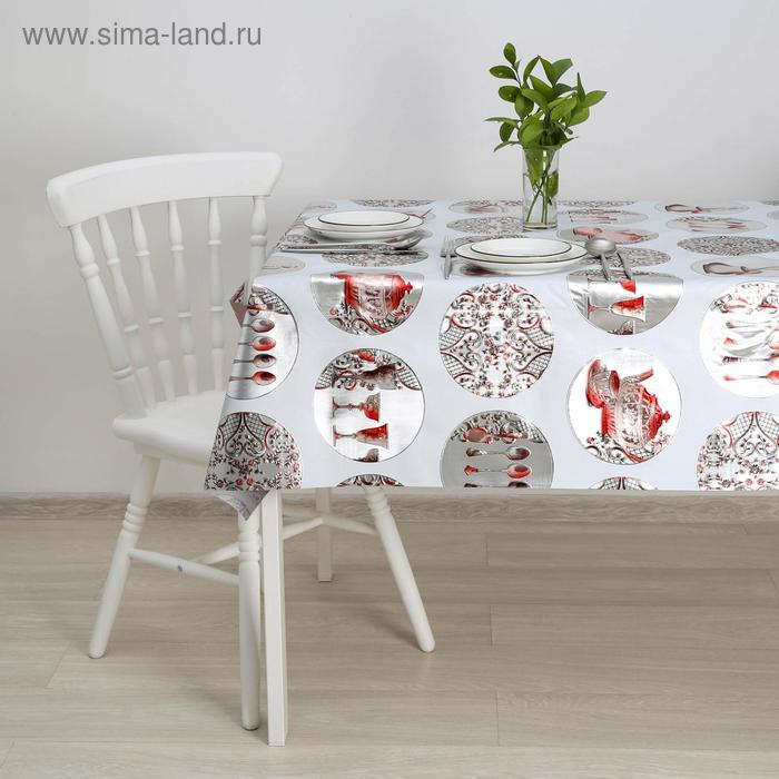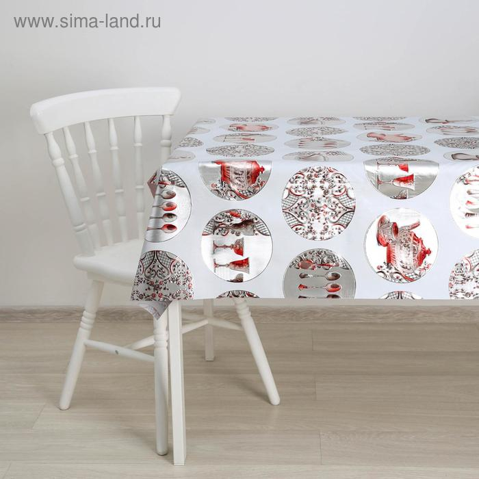 Клеёнка на стол «Посуда», на тканевой основе, ширина 137 см, рулон 20 м, толщина 0,25 мм
