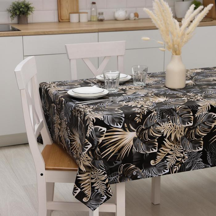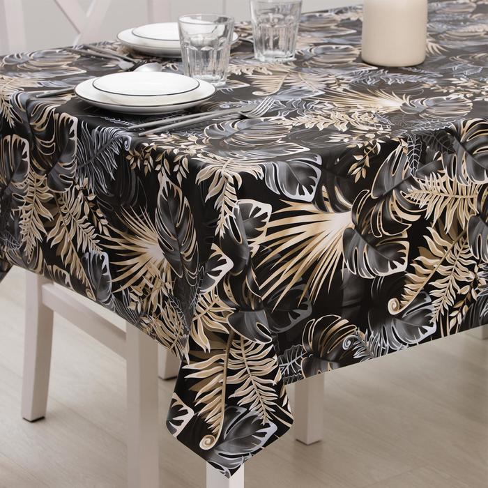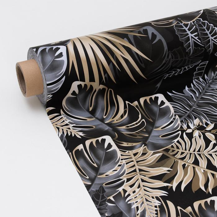 Клеёнка на стол «Тропики», на тканевой основе, рулон 20 метров, ширина 137 см, толщина 0,25 мм, цвет чёрный