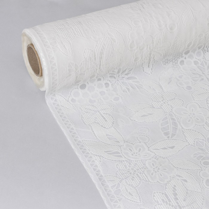 Клеёнка на стол «Ягодки», ажурная, ширина 137 см, рулон 20 метров, толщина 0,2 мм, цвет белый
