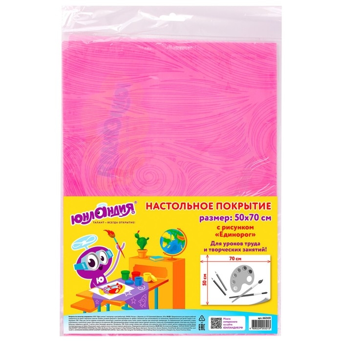 Клеёнка настольная для занятий творчеством ПВХ (складная), 700 х 500 мм, Юнландия "Единорог"