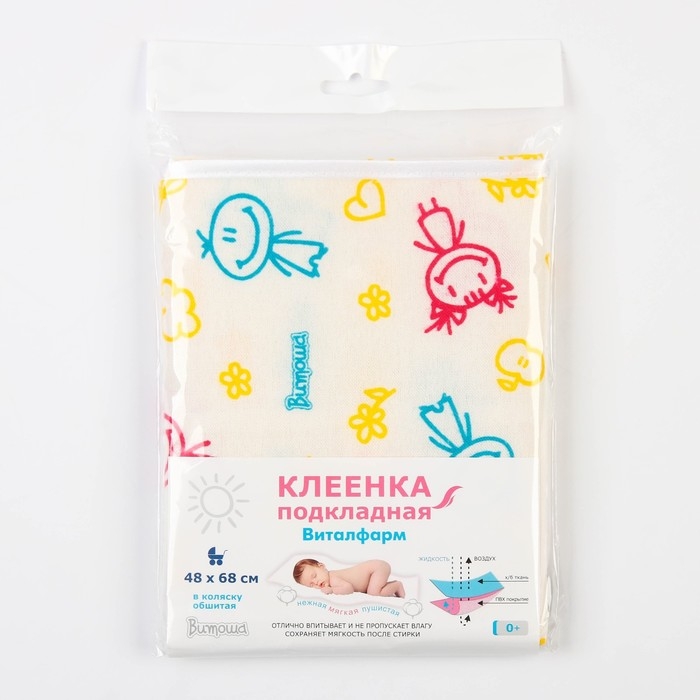 Используйте подкладную клеёнку во время сна, если на младенца не надет подгузник. Применяйте клеёнку, чтобы защититься от намокания. Изделие является приятным на ощупь, дышащим, легко чистится и быстро сохнет. Безопасность и качество изделия подтверждаются сертификатом соответствия. Товар предназначен для детей с рождения.