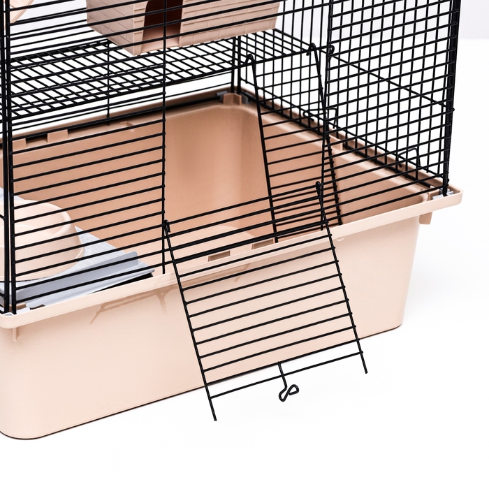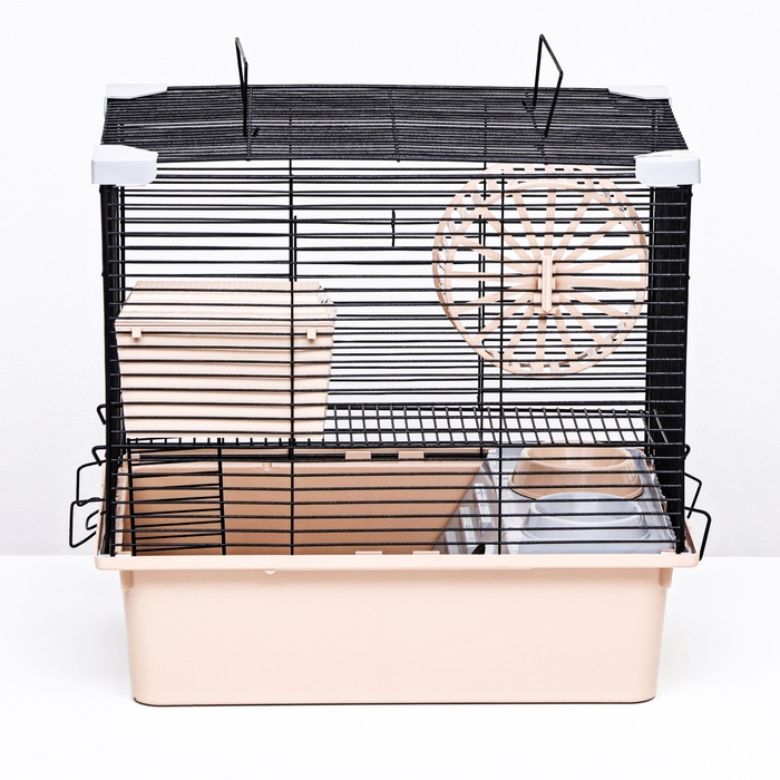 Клетка для грызунов "Пижон" №10, 2 этажа, разборная, 42 х 30 х 37см (+домик,колесо,миска), бежевая