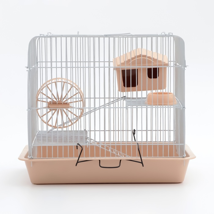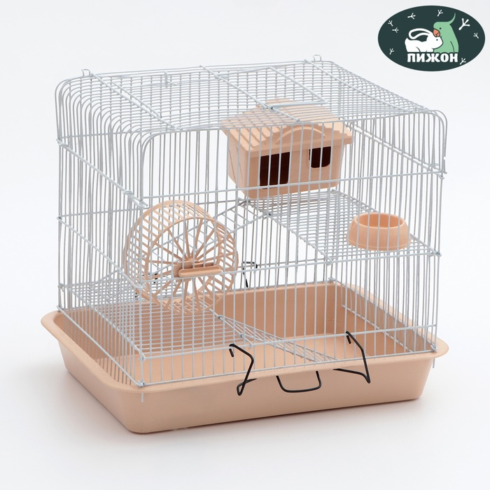 Клетка для грызунов "Пижон" №3, с 2-я этажами, укомплектованная, 33 х 24 х 28 см, бежевая