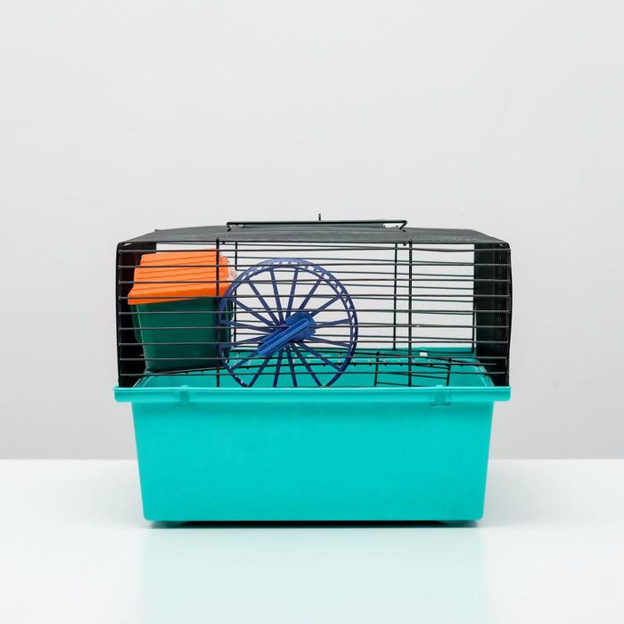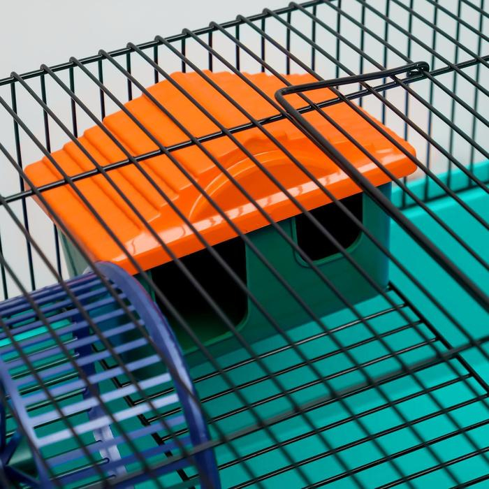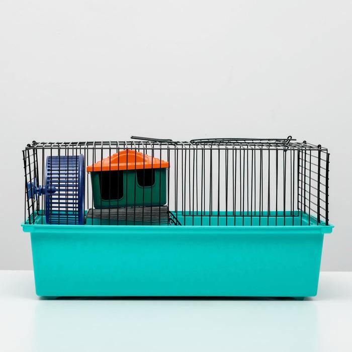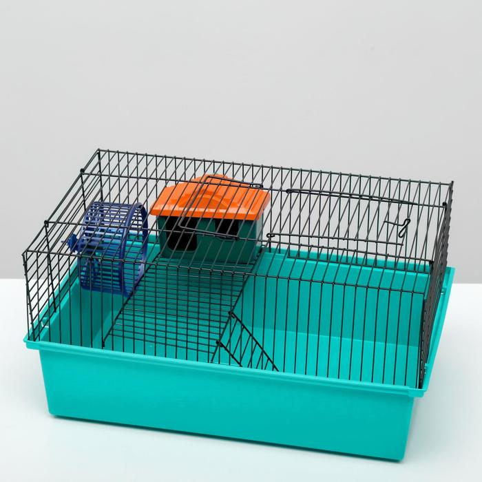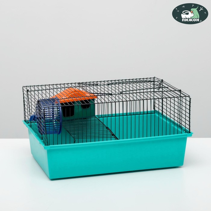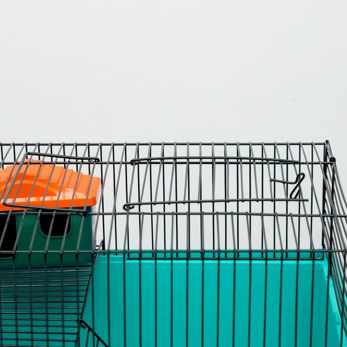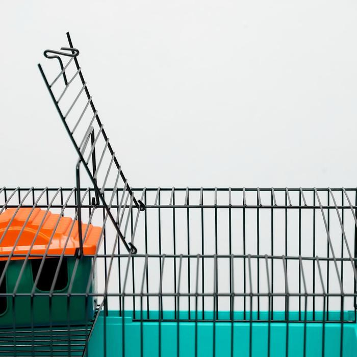 Клетка для грызунов "Пижон" №4, с этажом, укомплектованная, 37х26х18 см, бирюзовая