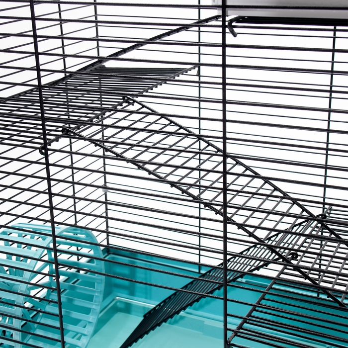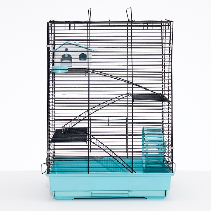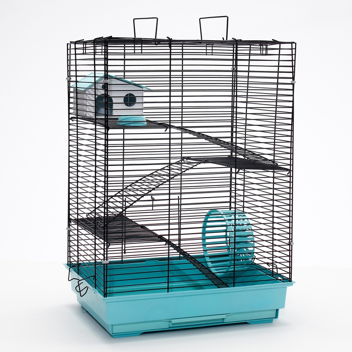 Клетка для грызунов "Пижон" №5, с 3 этажами, укомплектованная, 41 х 30 х 58 см, бирюзовая