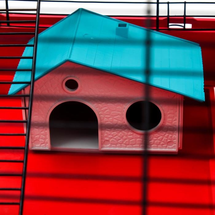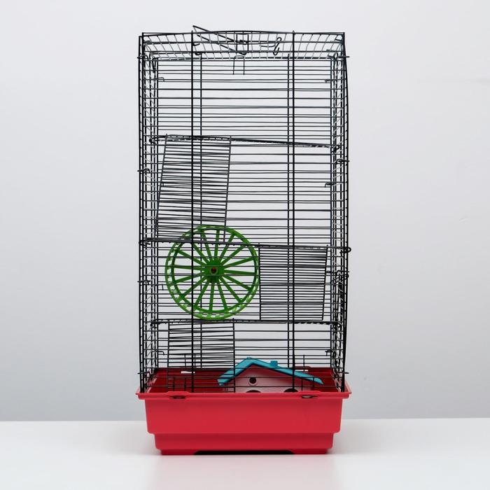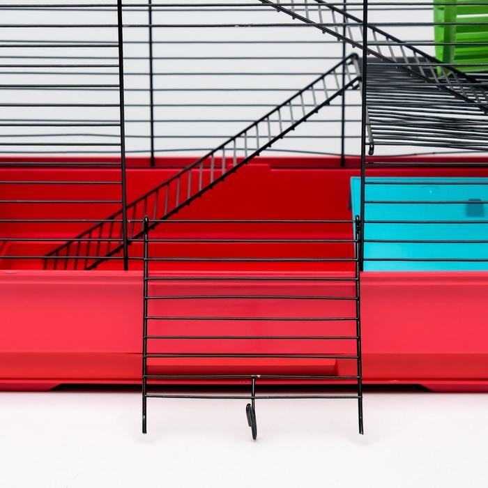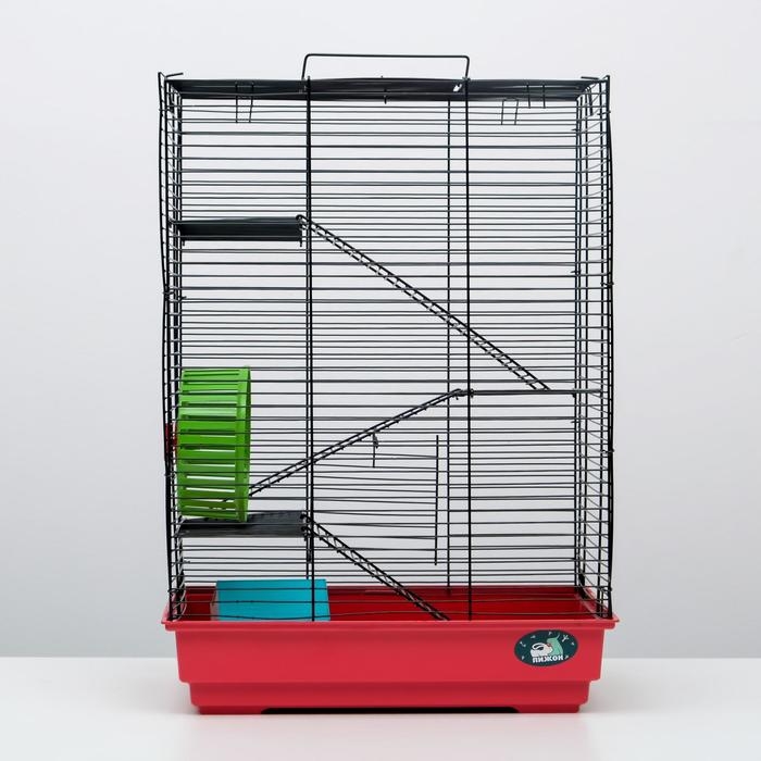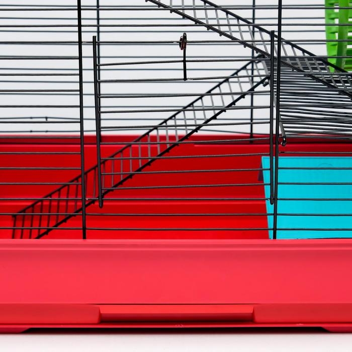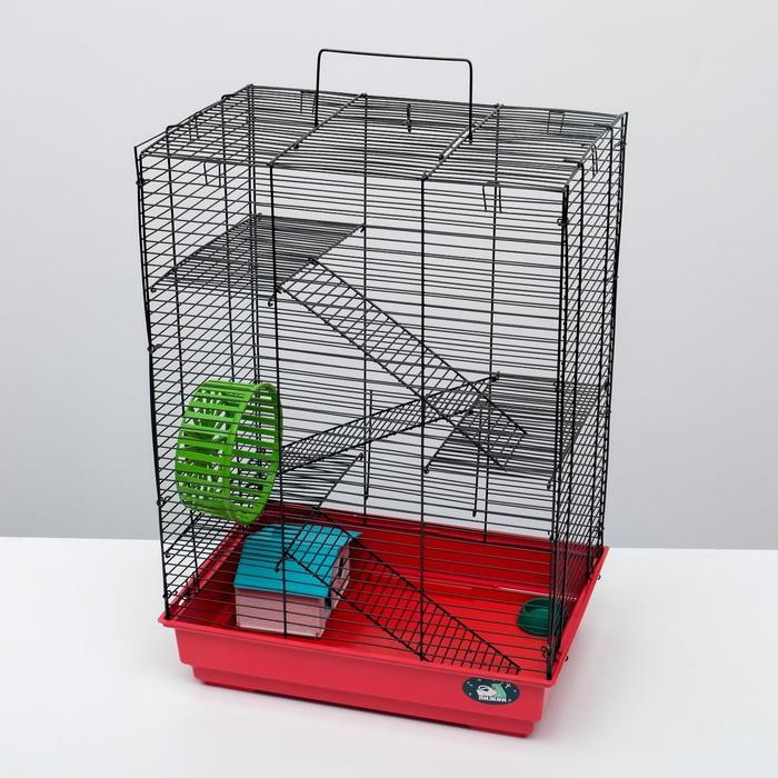 Клетка для грызунов "Пижон" №5, с 3 этажами, укомплектованная, 41 х 30 х 58 см, рубиновая