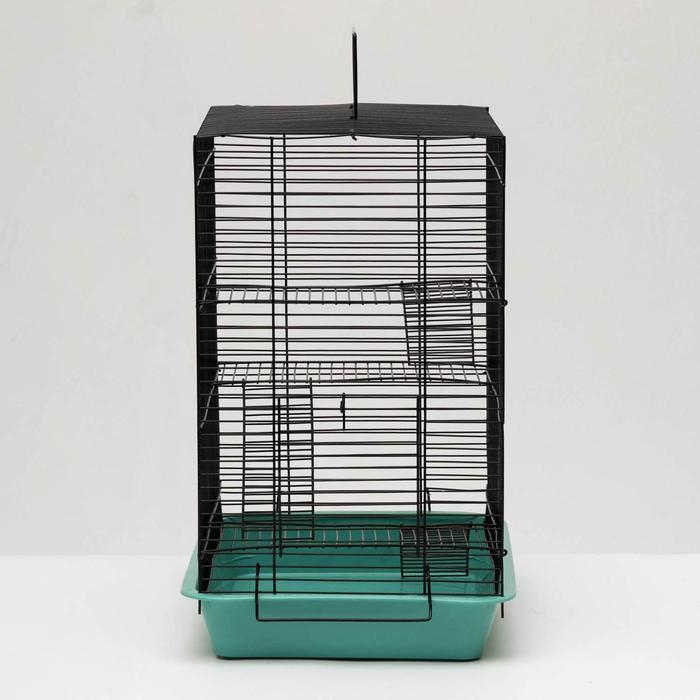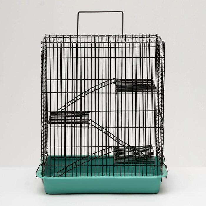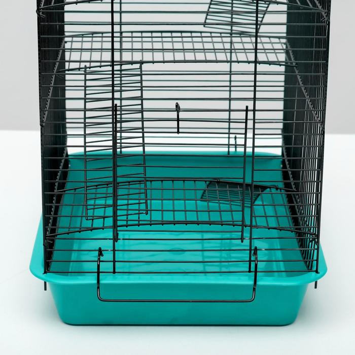Клетка для грызунов "Пижон" №5, с 3 этажами, укомплектованная, 41 х 30 х 58 см, бирюзовая