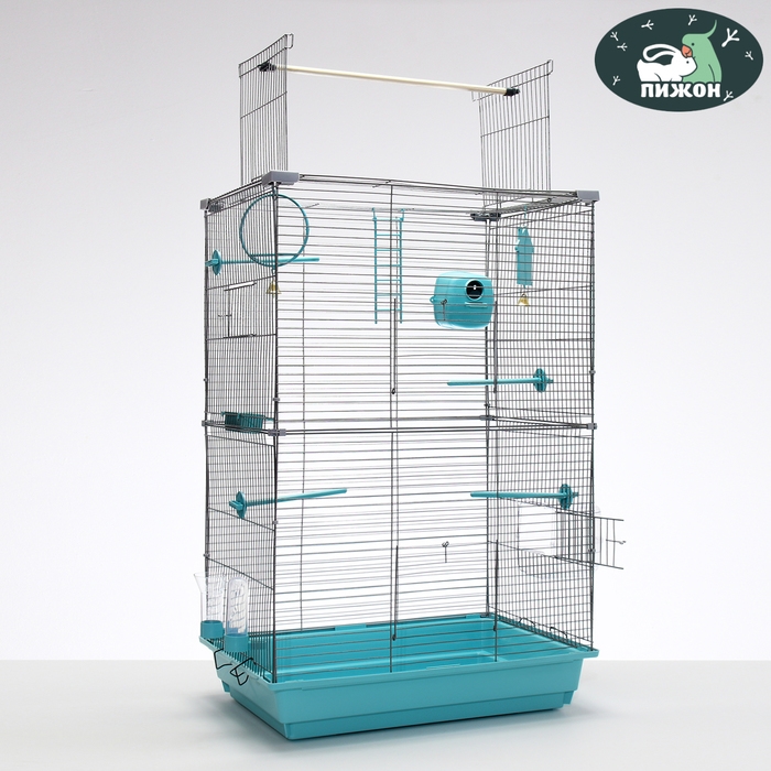 Клетка для птиц "Пижон" №104-Б, разборная, 2 секции, 58 х 40 х 88см, бирюзовая