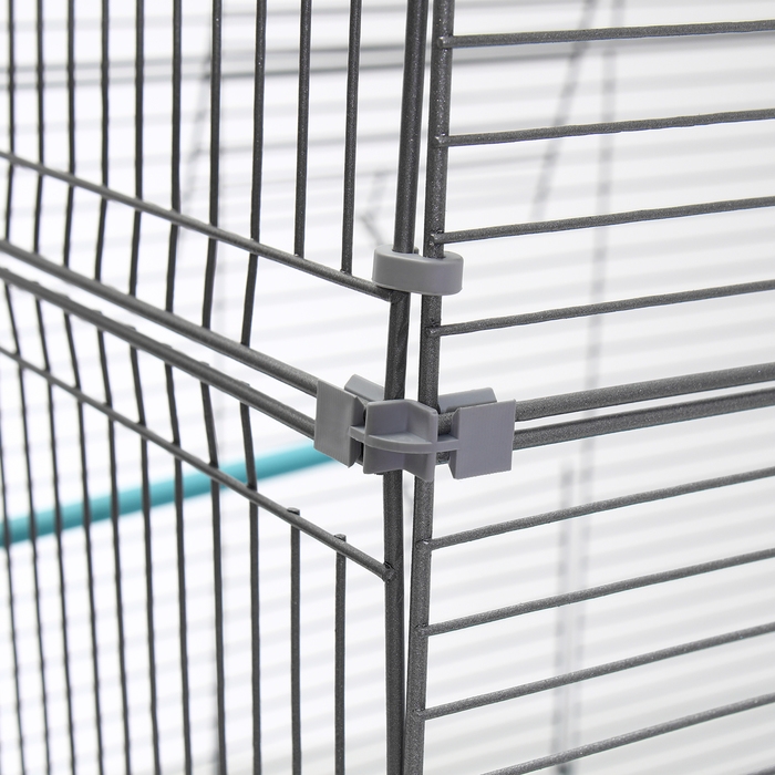 Особенностью данной модели является возможность ее разборки. Это очень удобно при транспортировке или хранении клетки. Кроме того, благодаря разборной конструкции, вы можете легко чистить клетку и поддерживать ее в чистоте.