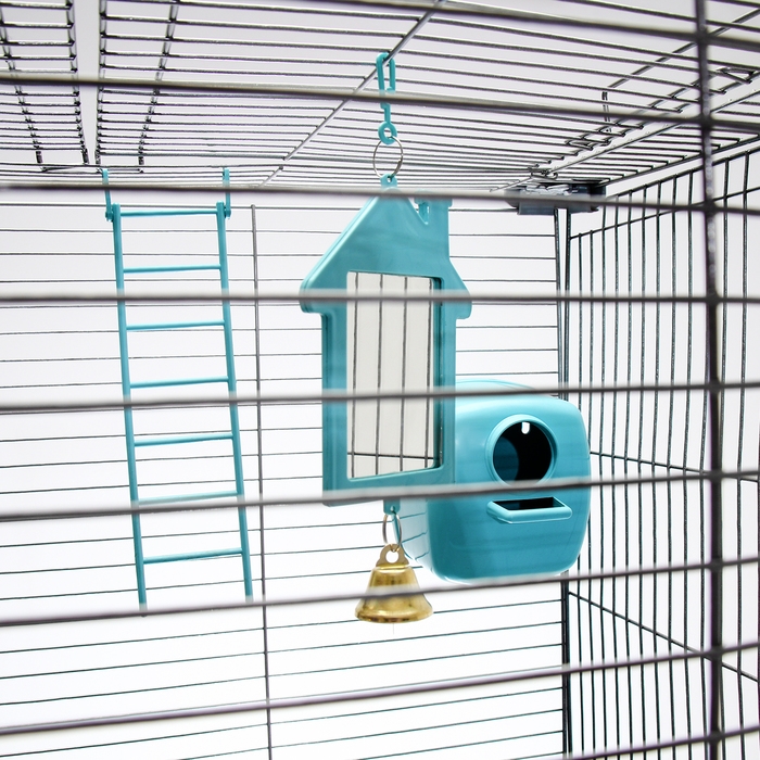 Клетка укомплектована всем необходимым для комфортного проживания птицы: кормушкой, поилкой, жердочками и игрушками. Все элементы выполнены из качественных материалов и безопасны для здоровья вашего питомца.
