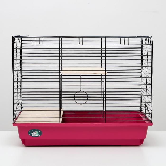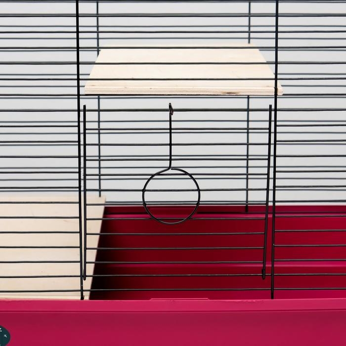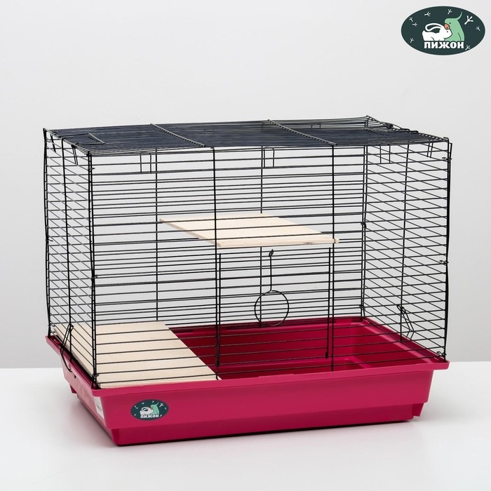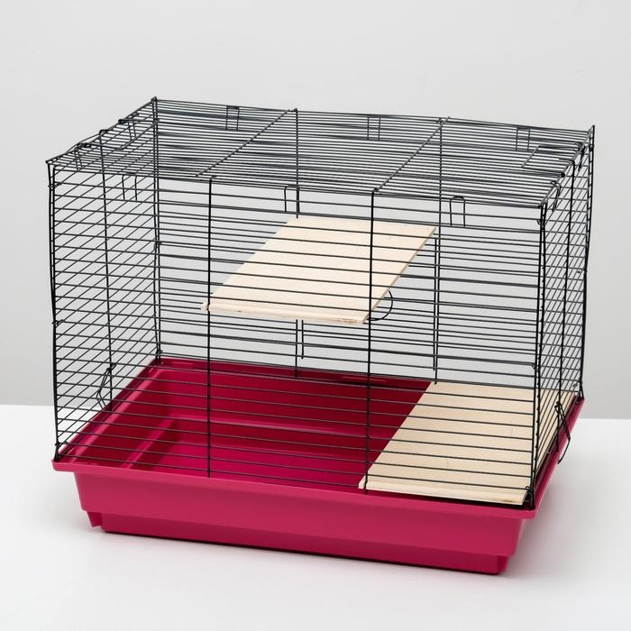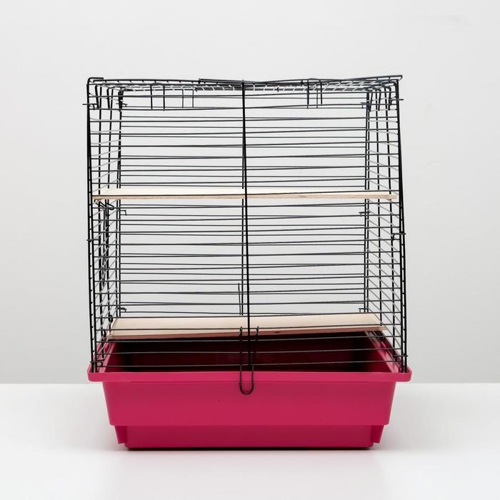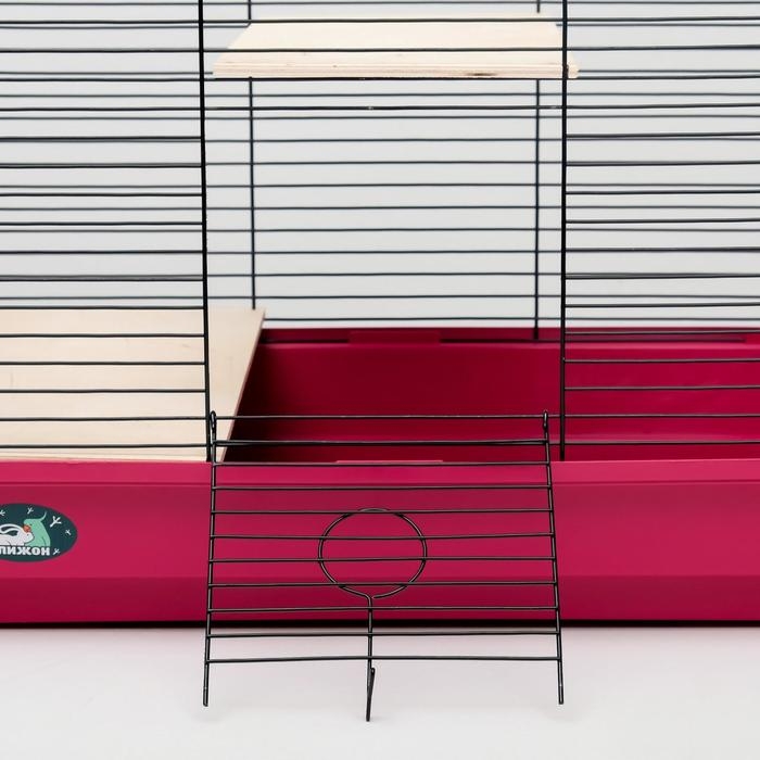 Клетка для шиншилл "Пижон" №8 с 2-я деревянными этажами, разборная, 58х40х48 см, малиновая