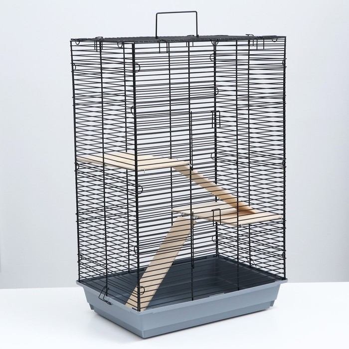 Клетка для шиншиллы (2 деревянные полки), 58 х 40 х 90 см микс цветов
