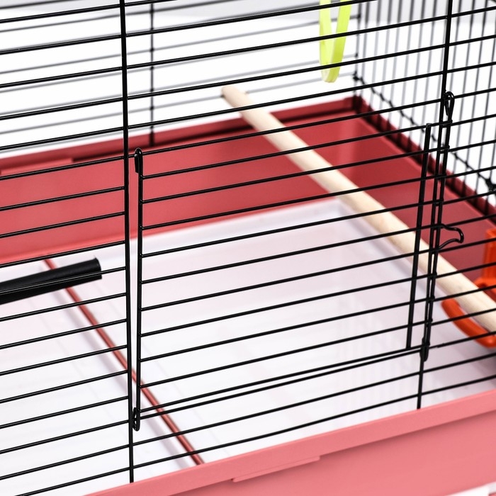 Представляет два уровня для размещения птиц. Это позволяет создать более просторное пространство для птиц и обеспечить разделение между различными видами. Оснащен жердочкой, кормушками и поилками для обеспечения птицам доступа к пище и воде.