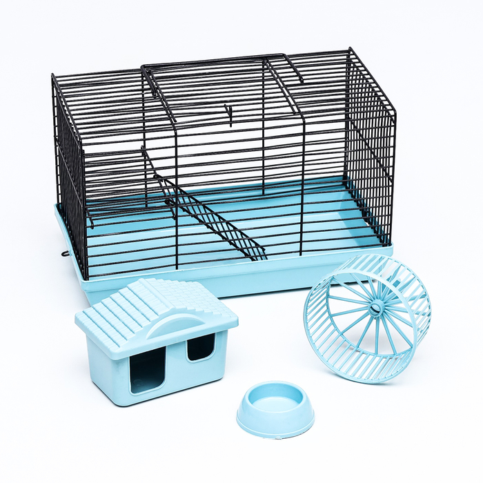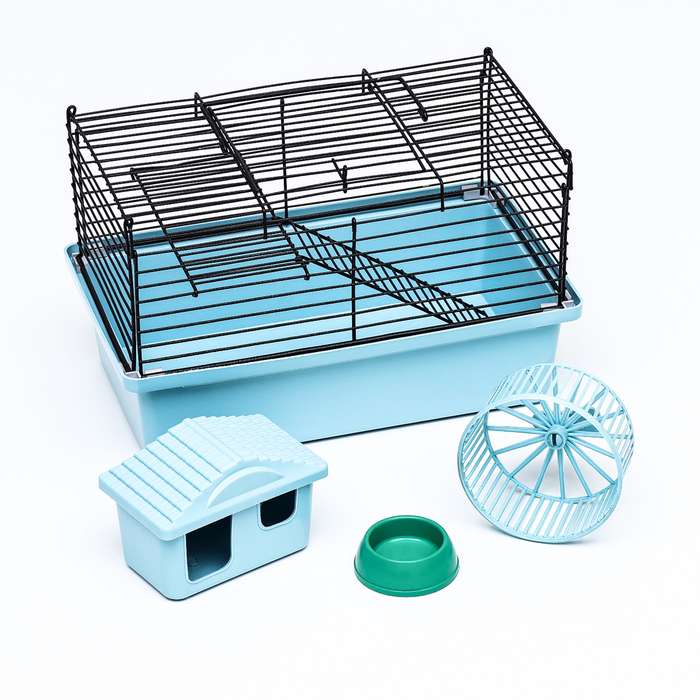 Клетка для грызунов укомплектованная, 27 х 19 х 28 см, голубая