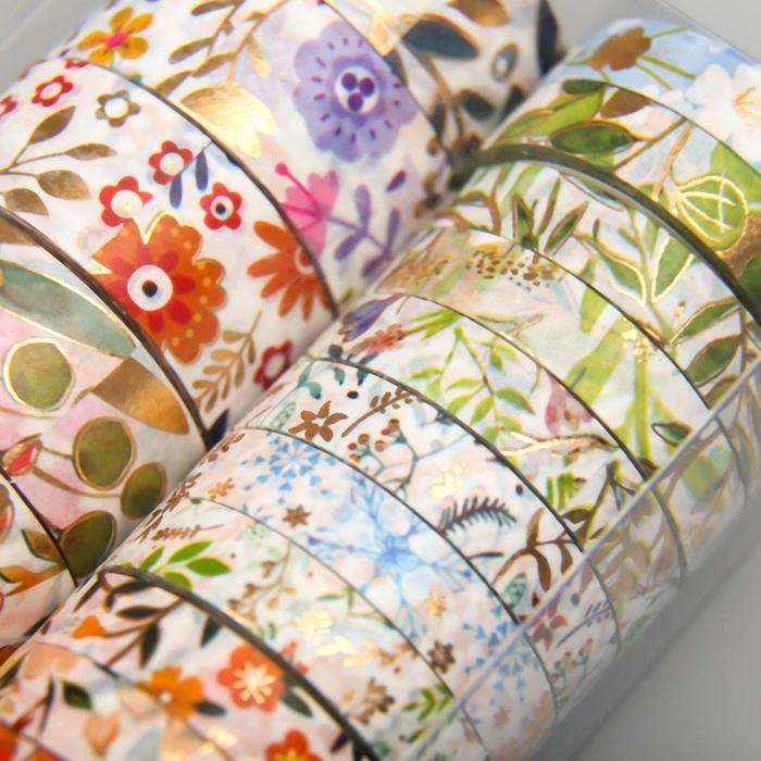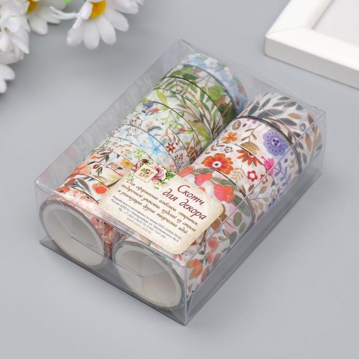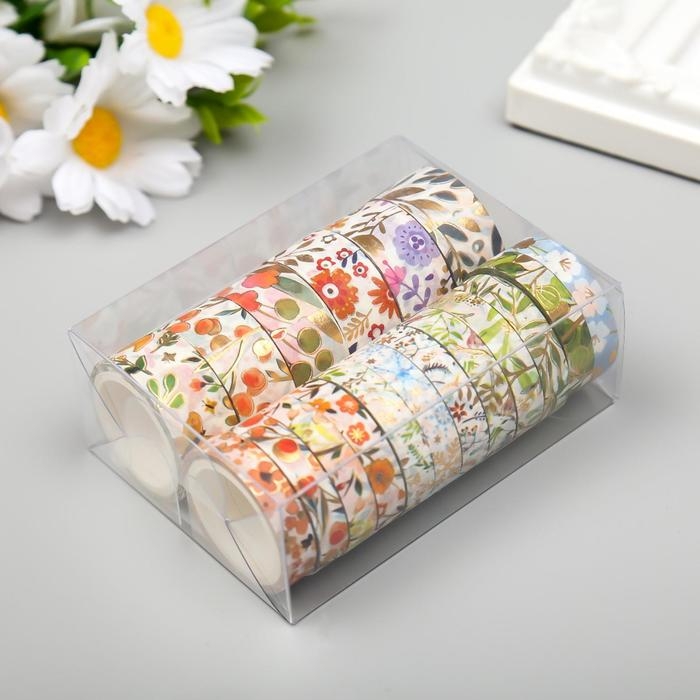 Клейкая лента бумага "Цветы" набор 18 шт ширина 0,8;1,5 см длина 3 метра 9,5х7х3,5 см