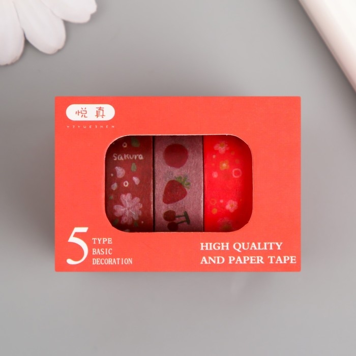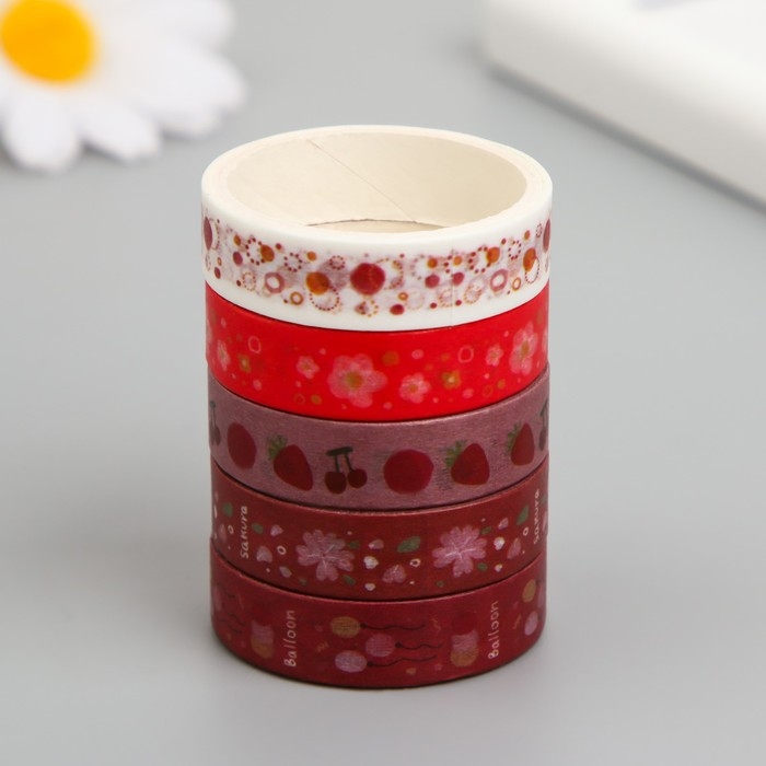 Клейкая лента бумага "Лето с клубникой" ширина 1 см намотка 2 м набор 5 шт