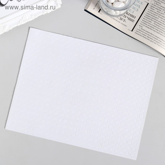 Клейкая лента двухсторонняя "Круглый белый" диаметр 0,8 см на листе 374 шт 25х19,5 см