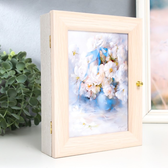 Ключница "Белоснежные цветы" молочный дуб 17х22 см