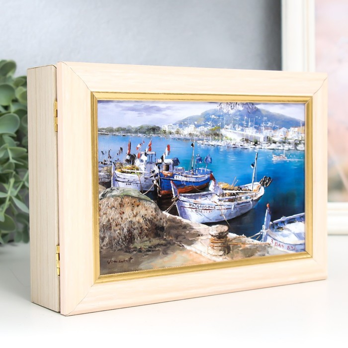 Ключница "Белые лодочки" 15х21 см молочный дуб