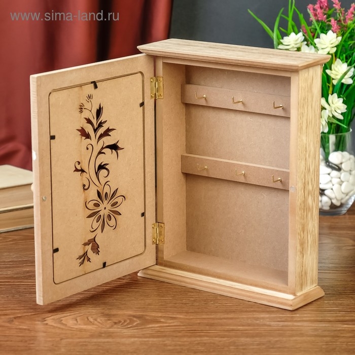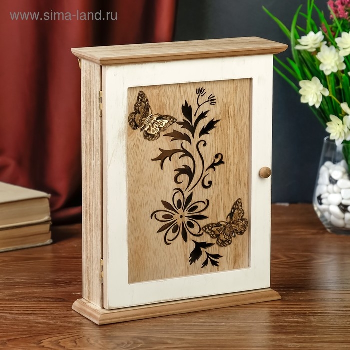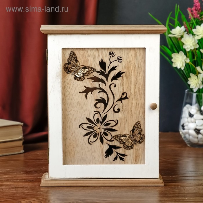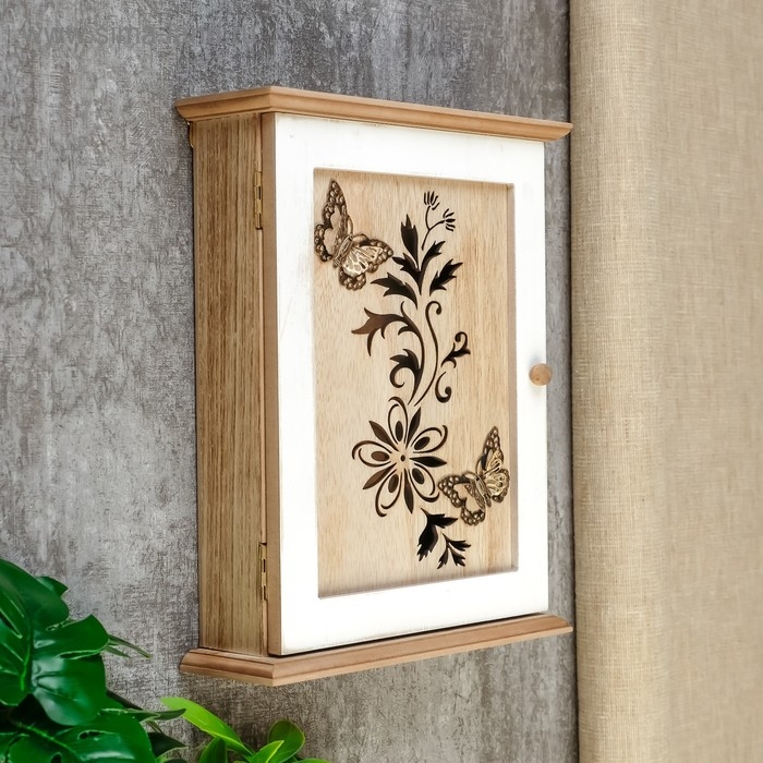 Ключница дерево 6 крючков "Бабочки и цветы" 26х20х6,5 см
