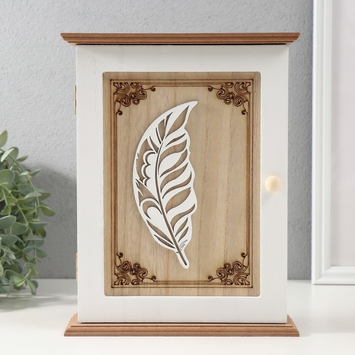 Ключница дерево 6 крючков "Белое пёрышко" 5х20х25,5 см