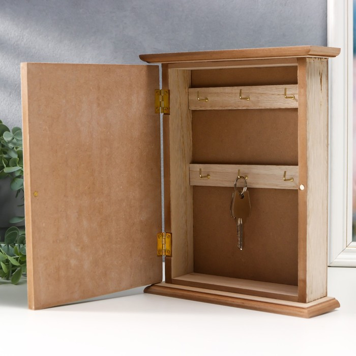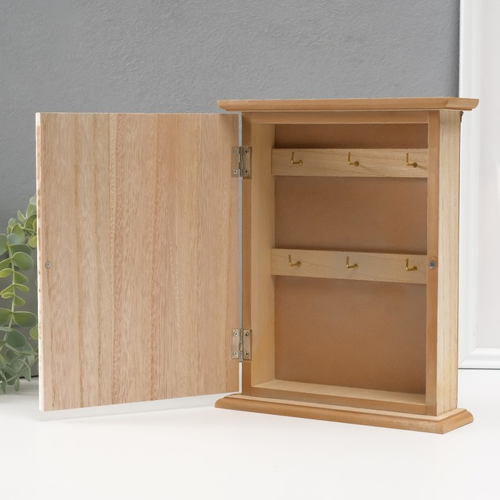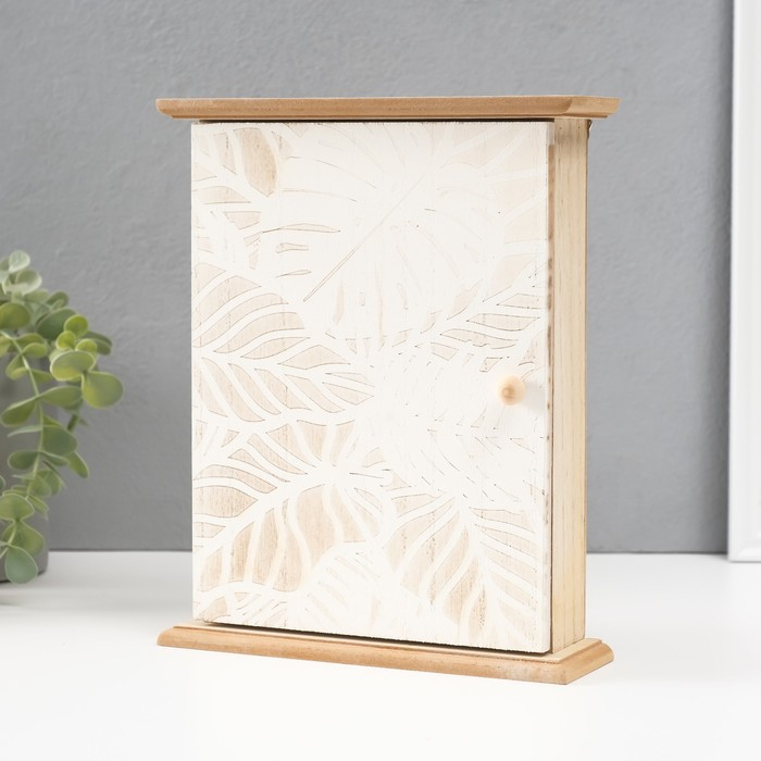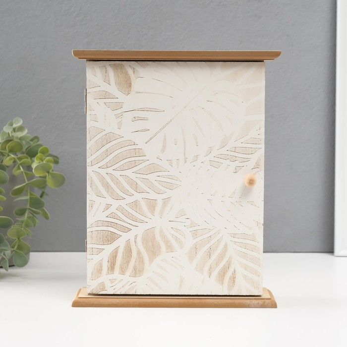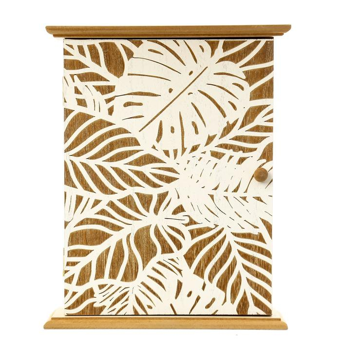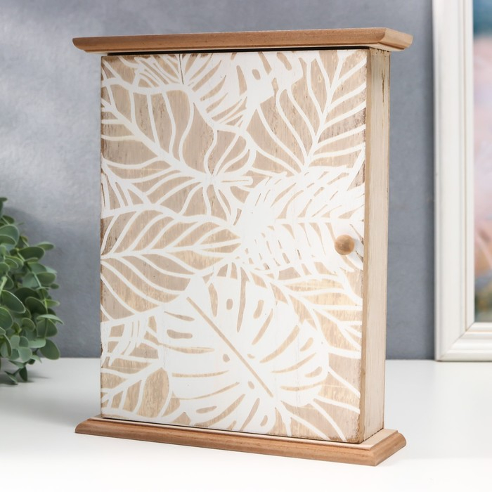 Ключница дерево 6 крючков "Белые пальмовые листья" 25,5х20,5х6,5 см МИКС
