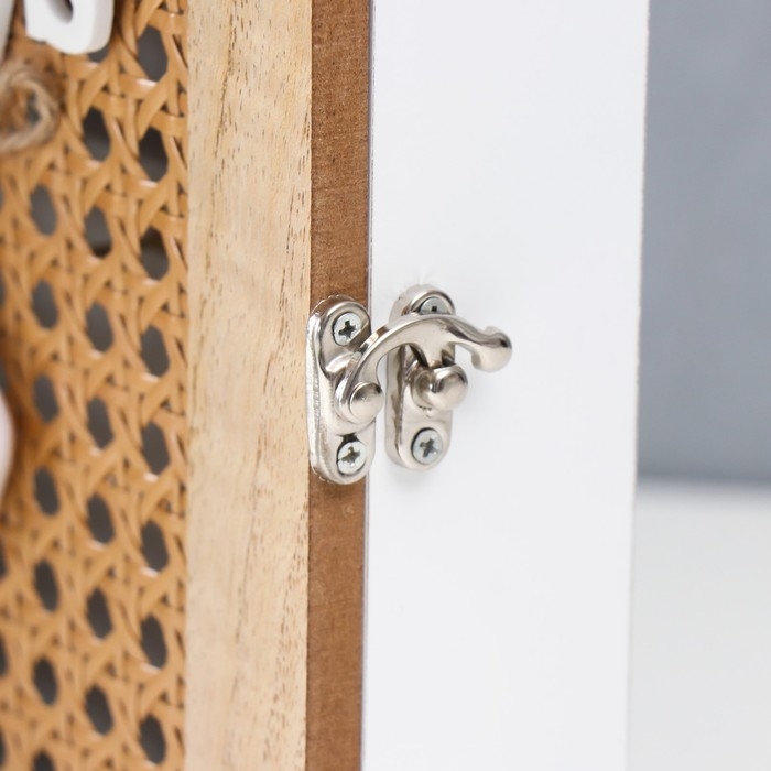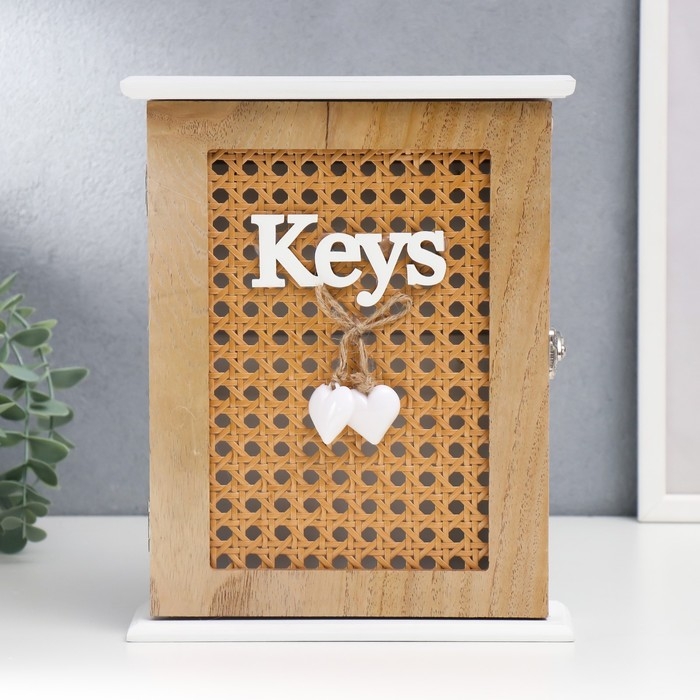Ключница дерево 6 крючков "Два сердца и рогожка" 26х19х5,8 см