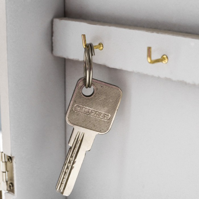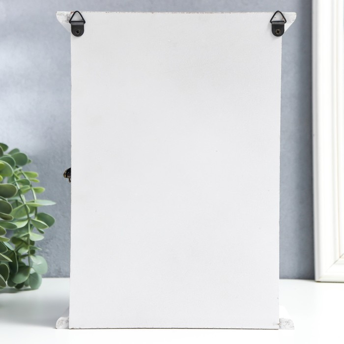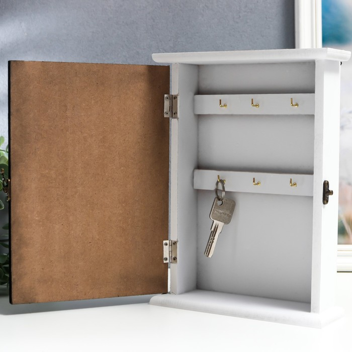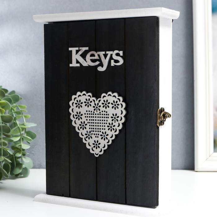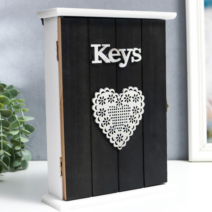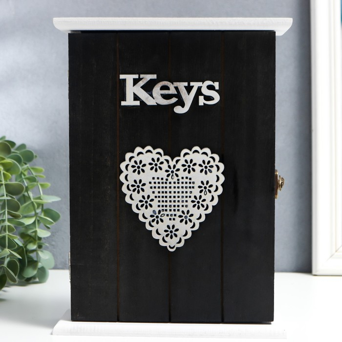 Ключница дерево 6 крючков "Ключи.Сердце" серая с белым 26х19х6 см