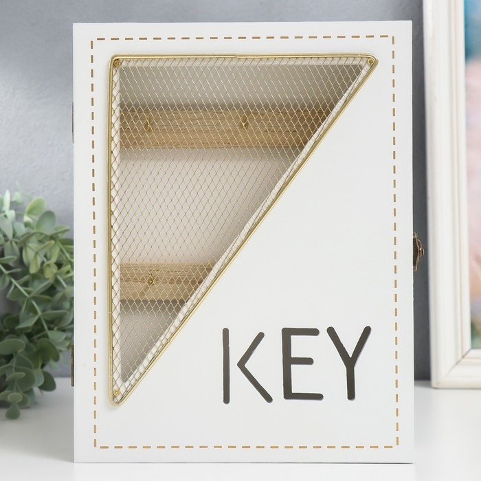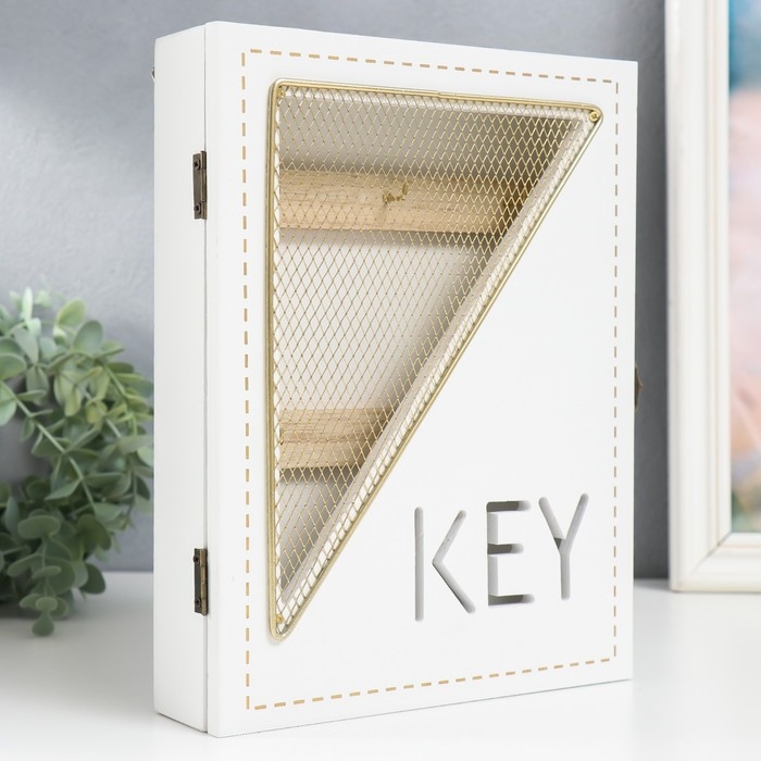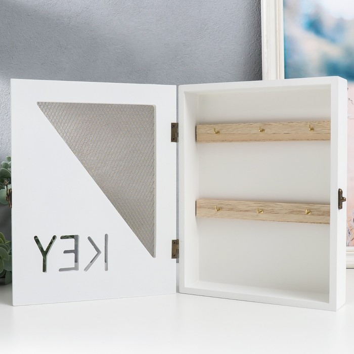 Ключница дерево 6 крючков "Сетка-треугольник" белая 19,5х5х26 см