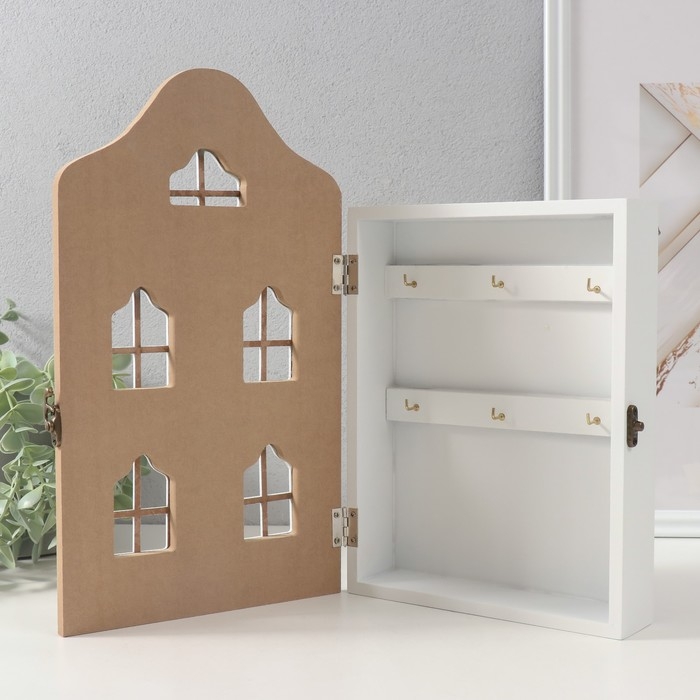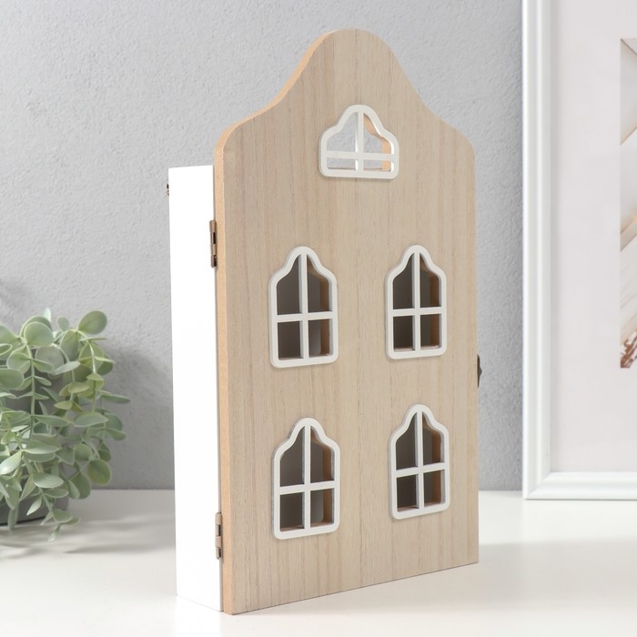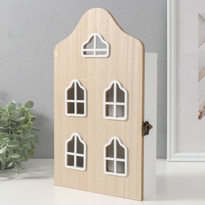 Ключница дерево 6 крючков "Старинный дом с арочными окнами" 31,5х18,3х5,2 см