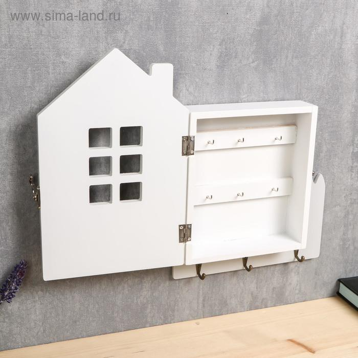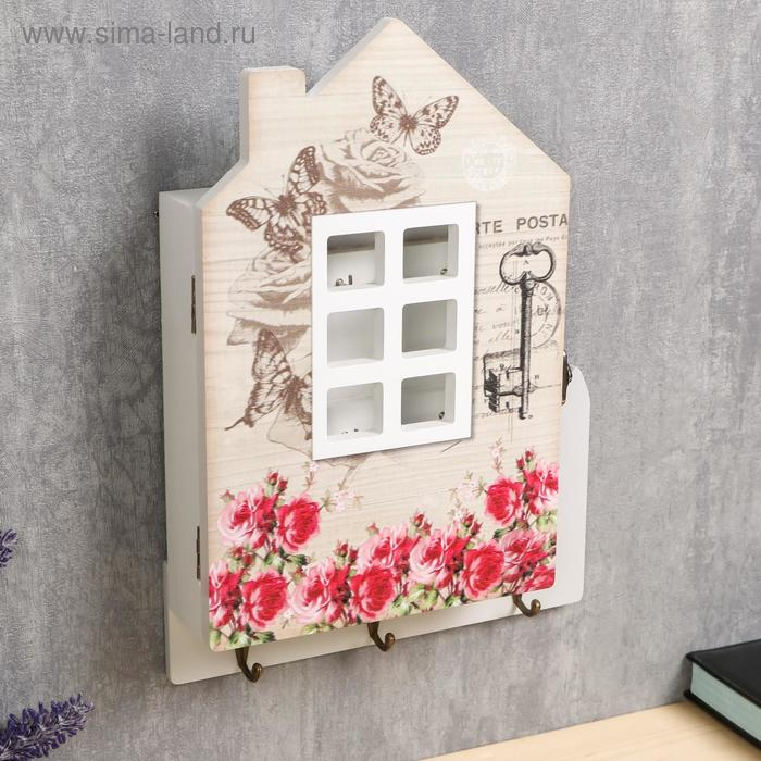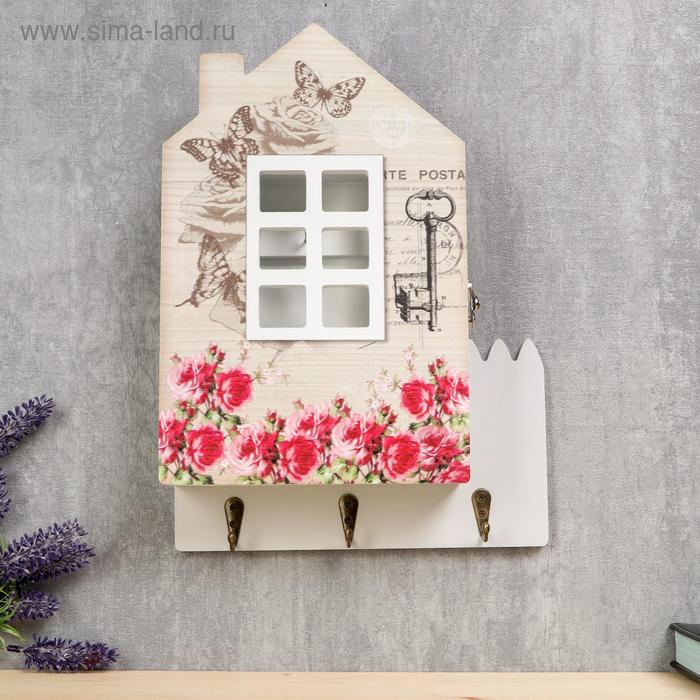 Ключница дерево "Домик с розовым садом" 30х22х6 см