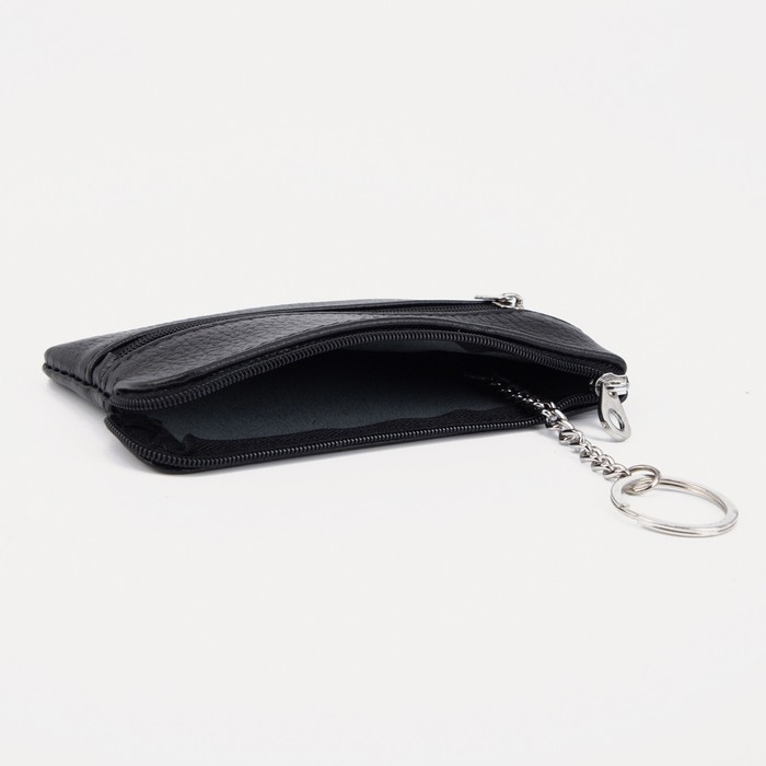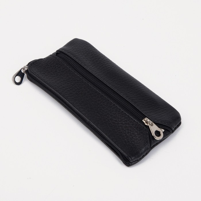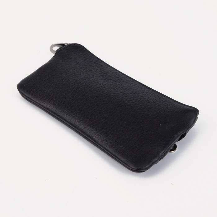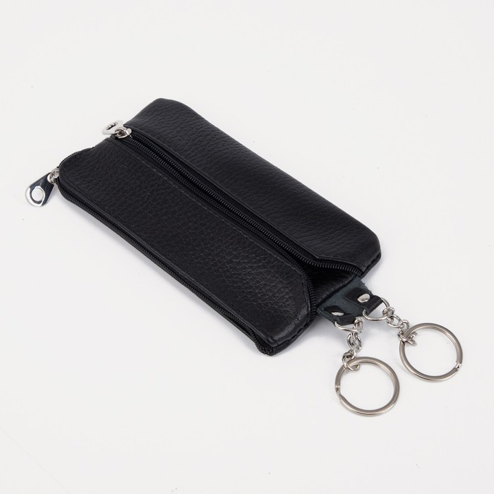 Ключница, длина 15 см, 2 отдела на молниях, 2 кольца, цвет чёрный