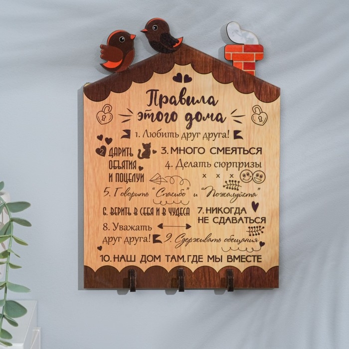 Ключница "Дом с птичками", ламинация, 20х29 см