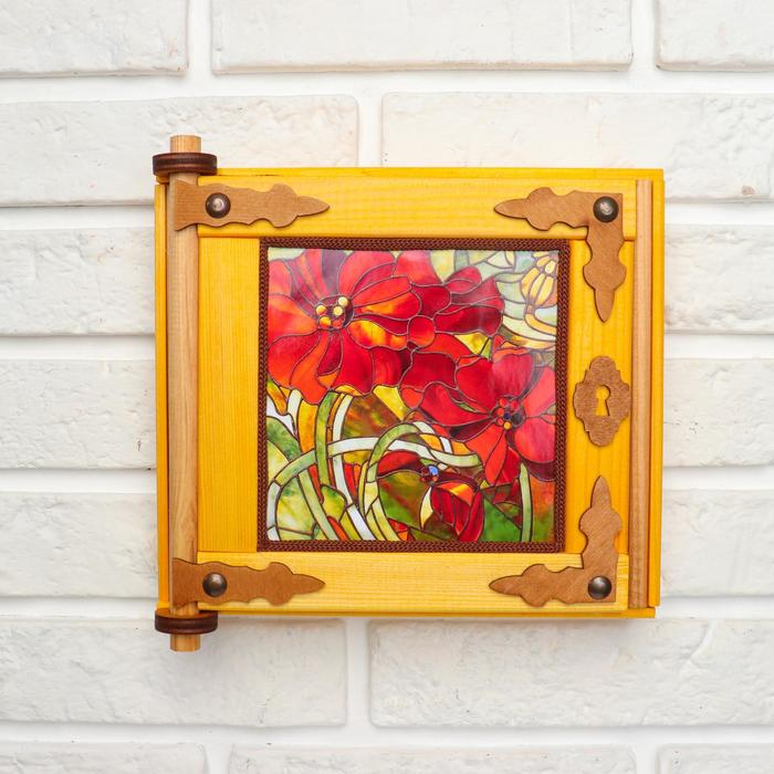 Ключница - картина, деревянная "Маки", 20 х 20 х 6 см