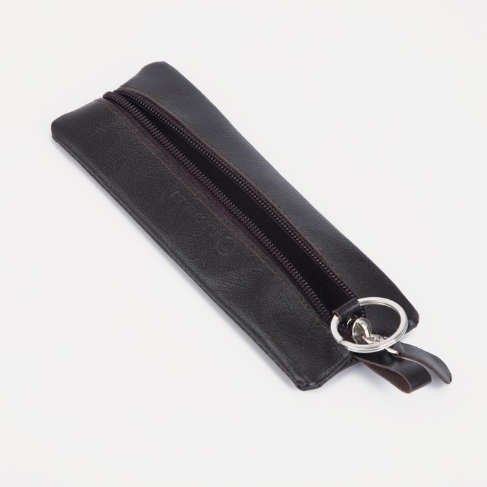 Ключница на молнии TEXTURA, длина 17 см, кольцо, цвет коричневый