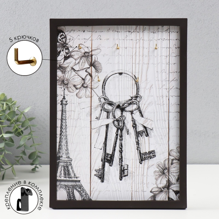 Ключница открытая "Ключи" 5 крючков, 23х32 см