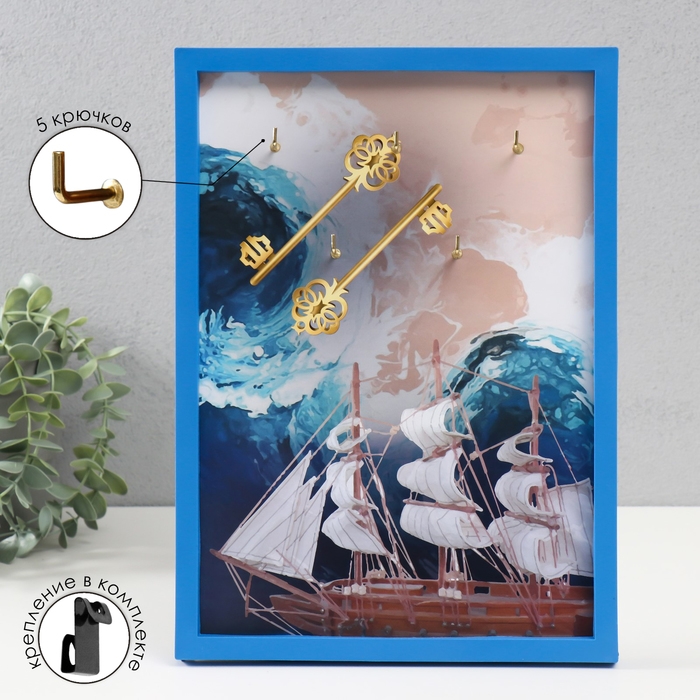 Ключница открытая "Корабль" 5 крючков, 23х32 см