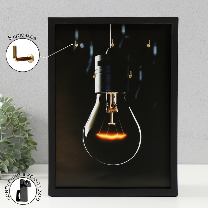 Ключница открытая "Лампочка. Лофт" 5 крючков, 23х32 см
