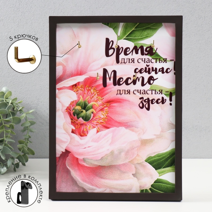 Ключница открытая "Место для счастья здесь" 5 крючков, 23х32 см