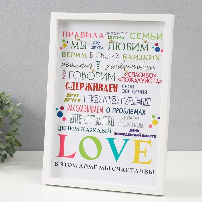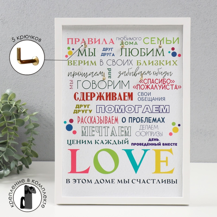 Ключница открытая "Правила любимого дома" 5 крючков, 23х32 см