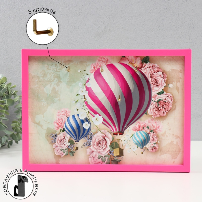 Ключница открытая "Воздушные шары" 5 крючков, 23х32 см