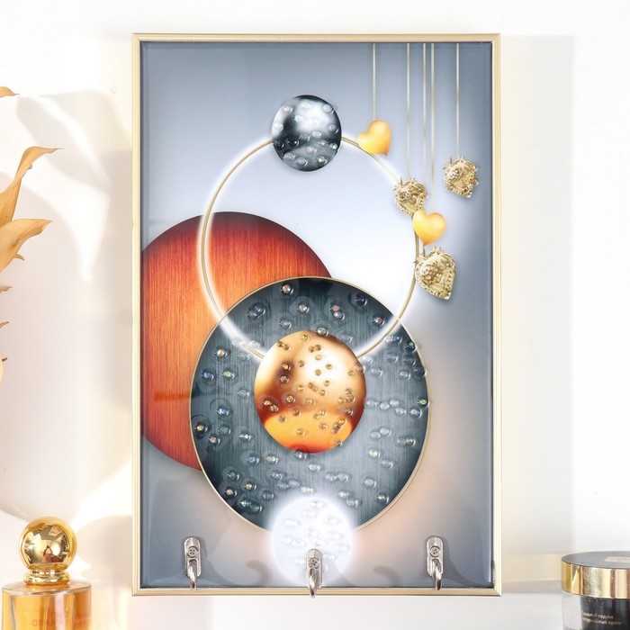 Ключница пластик, МДФ 3 крючка "Абстракция. Вечная любовь" стразы, золото 29х1,8х19 см
