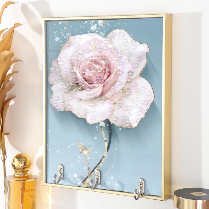 Ключница пластик, МДФ 3 крючка "Нежная роза" стразы, золото 18,5х1,8х23,5 см