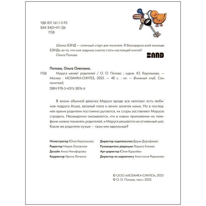 Книга «Маруся меняет родителей» серии «Книжный клуб. Сам почитаю!» — волшебная повесть о том, как ребёнок на собственном опыте познает, что же лучше для него и почему.