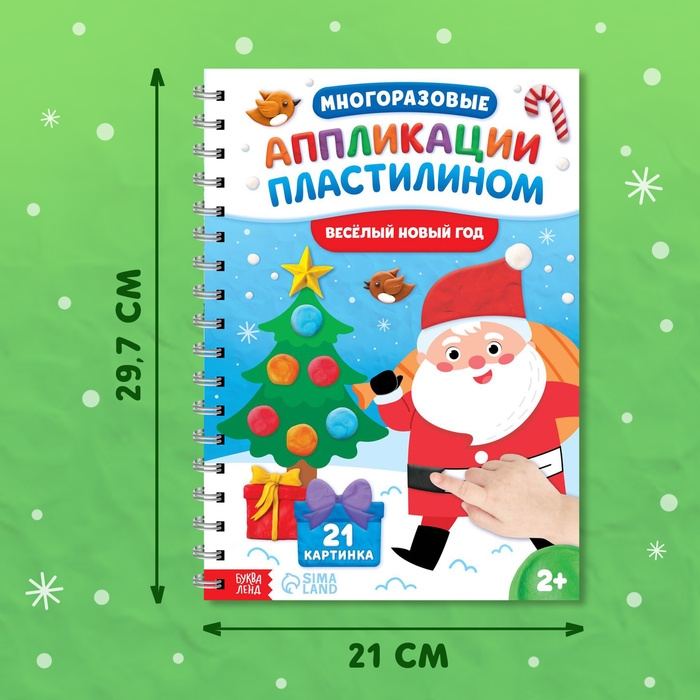 Книга «Многоразовые аппликации пластилином. Весёлый Новый год», 21 поделка, формат А4