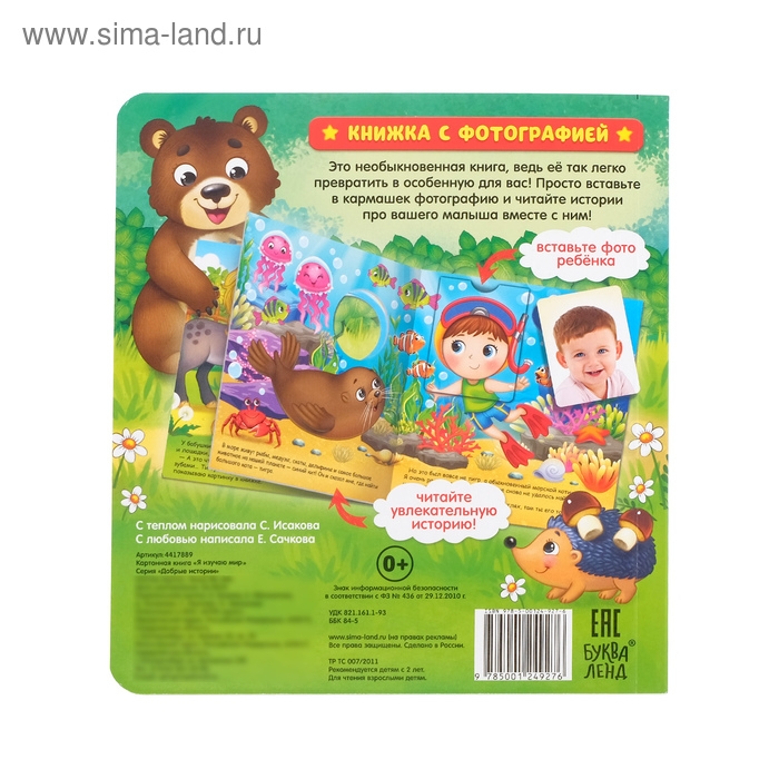 Книга написана так, будто её рассказывает сам ребёнок. Чтобы малыш стал не только рассказчиком, но и полноправным героем книги, вставьте его фото в специальный кармашек в конце издания.